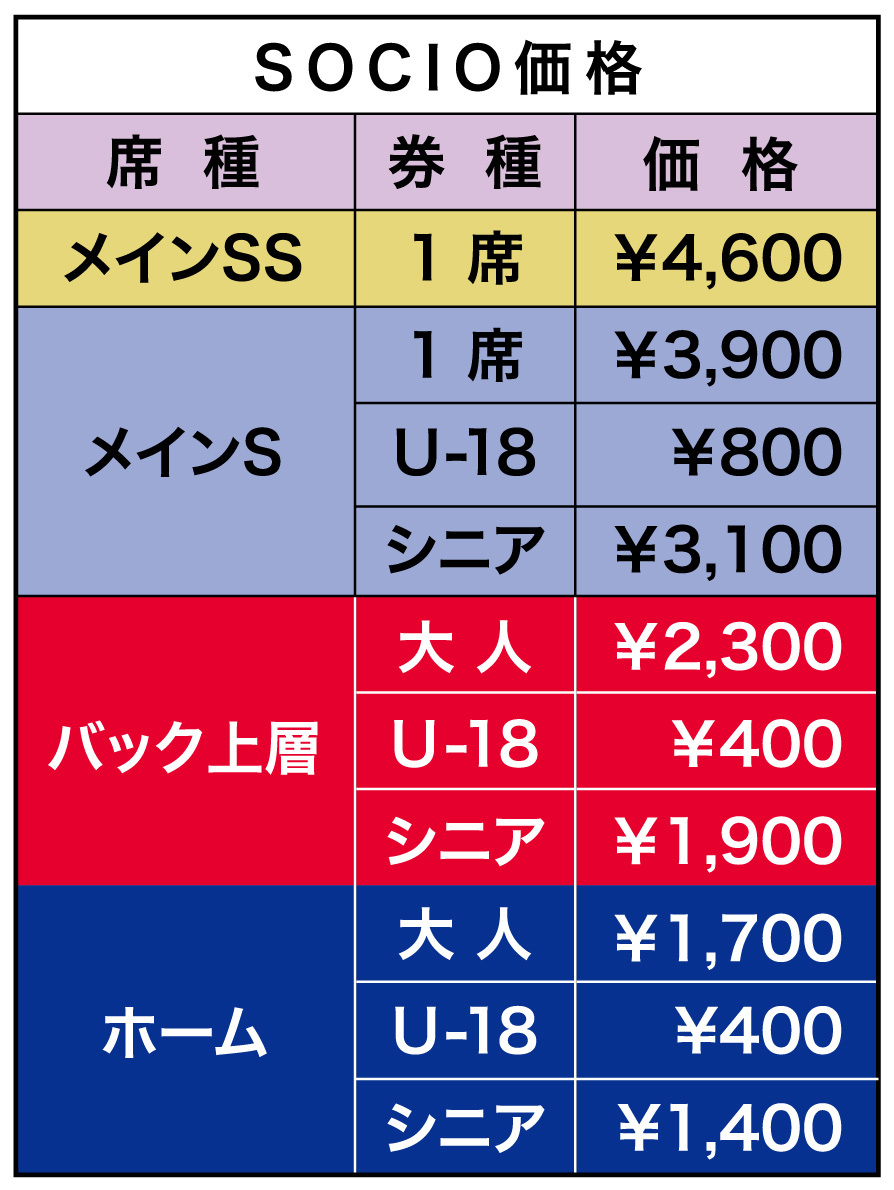 SOCIOのみなさまはSOCIO価格、クラブサポートメンバーのみなさまは会員価格で購入可能です。詳細は下記ご確認ください。