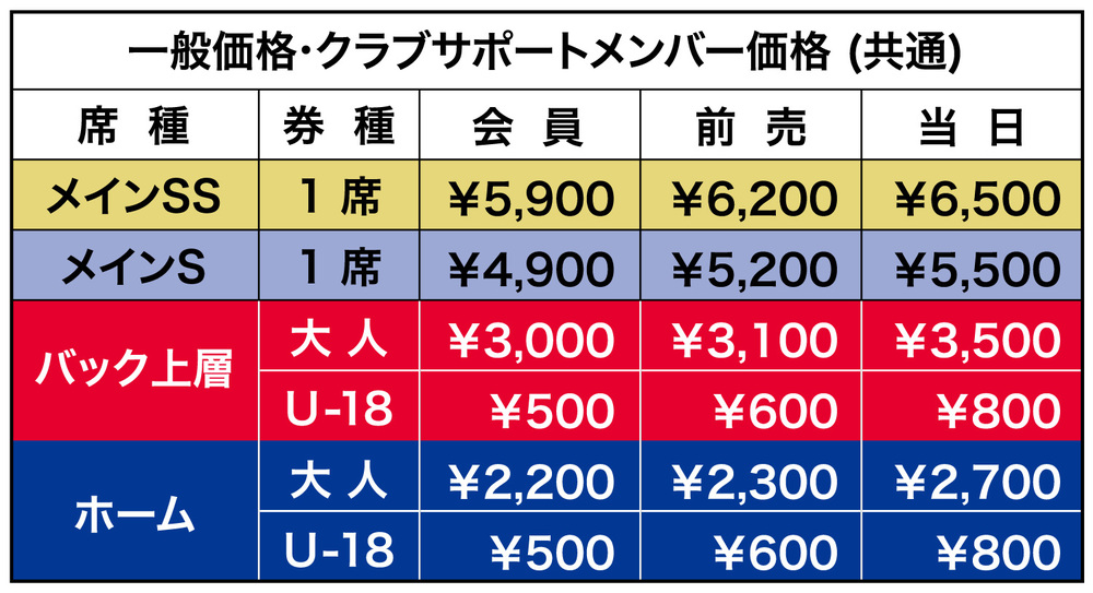 クラブサポートメンバー会員番号1つに付き1試合4枚までご購入頂けます(先行販売、発券・決済手数料無料)。会員優待価格にて2月17日(月)23:59までご購入可能です(試合当日は一般販売価格となります)。
