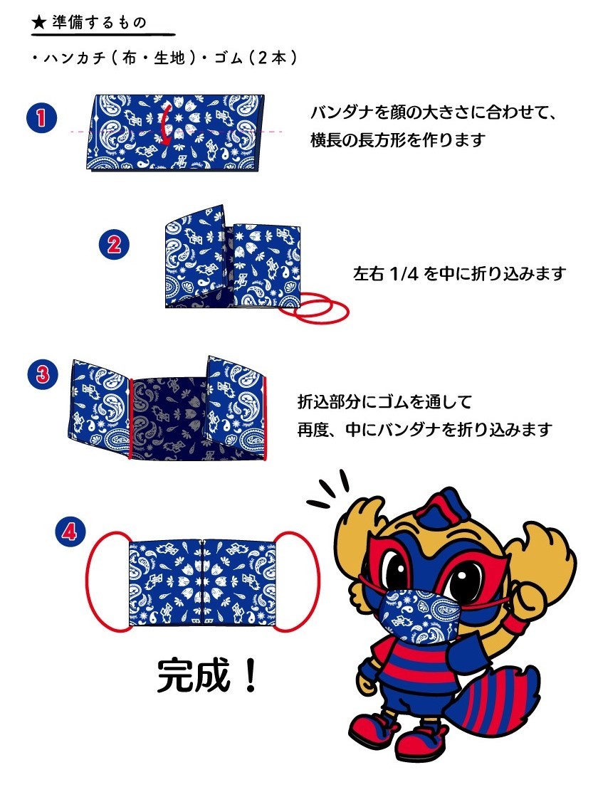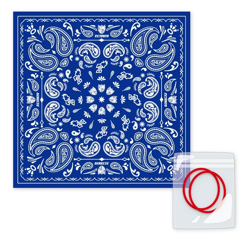 ※飛沫飛散防止対策として、バンダナを折ってマスクの代用にお使いいただけるようにヘアゴム2本とのセット販売となります。
