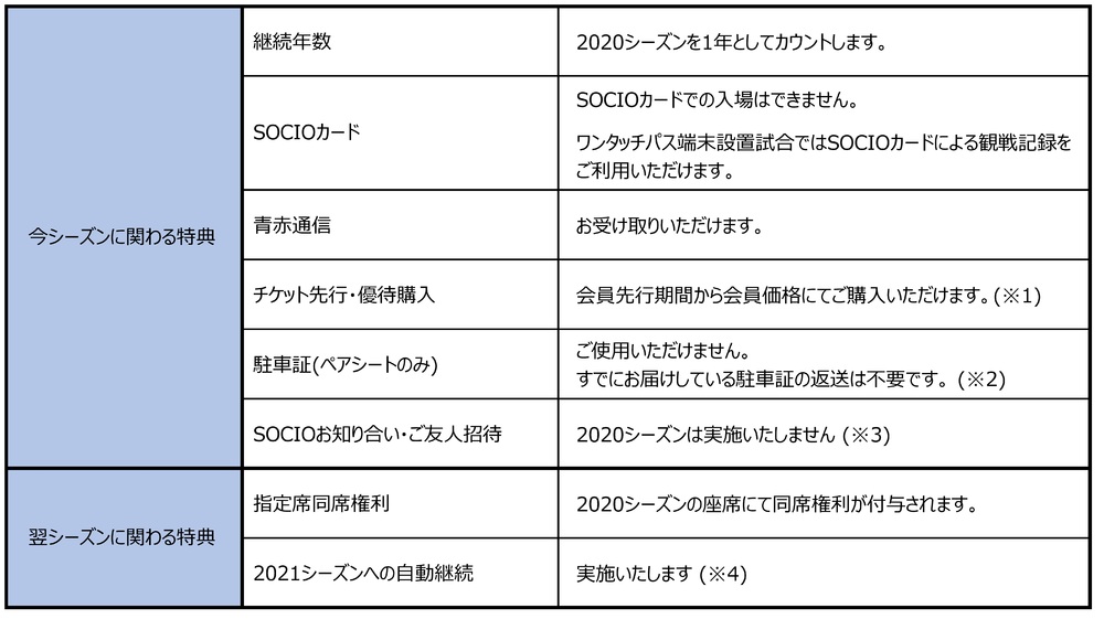 (※3)試合延期当初は別試合での実施予定でご案内しておりましたが、2020シーズンのSOCIOお知り合い・ご友人招待は実施いたしません。