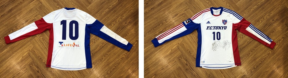 ▷商品説明:クラブ初代10番より、2012シーズンアカデミー2ndユニフォームに新旧FC東京10番(奥原崇育成部長・梶山陽平普及部コーチ)の直筆サインを入れて出品!