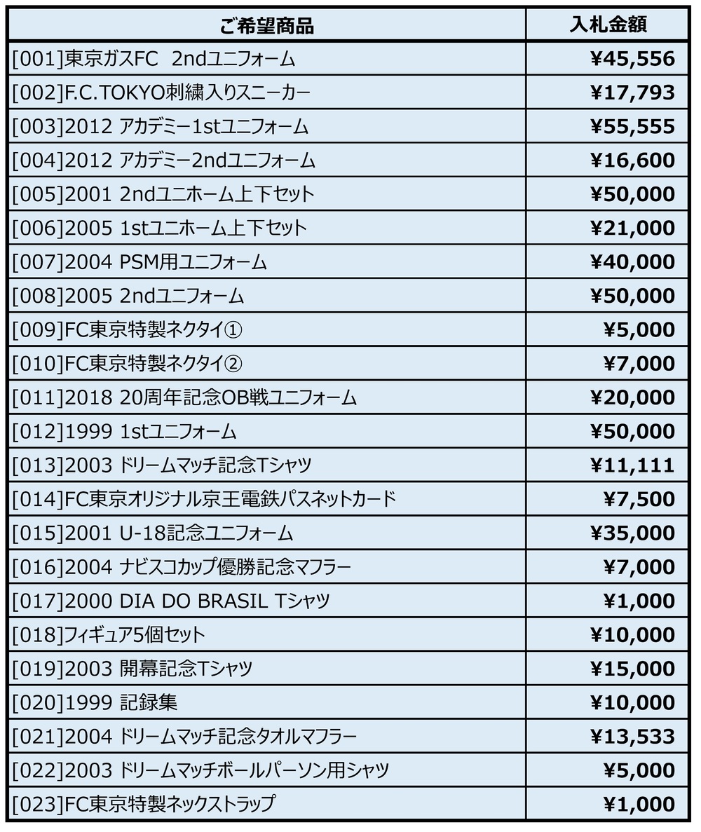 入札期間終了後、落札者には個別にFC東京よりJリーグIDに登録しているメールアドレスにご連絡させていただきます。