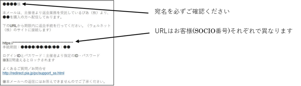 記載のURLはお客様(SOCIO番号)それぞれで異なりますので、お手続きの際はお間違えの無いようご注意ください。