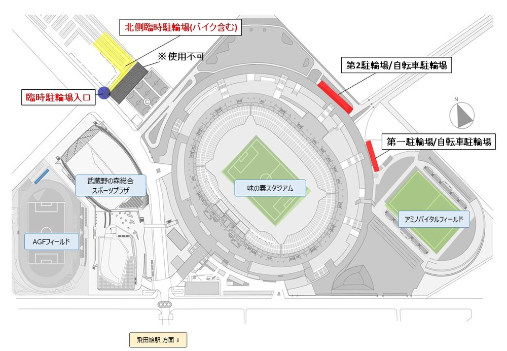【味の素スタジアムからのお知らせ】7/18浦和戦 自転車およびバイク駐輪場について