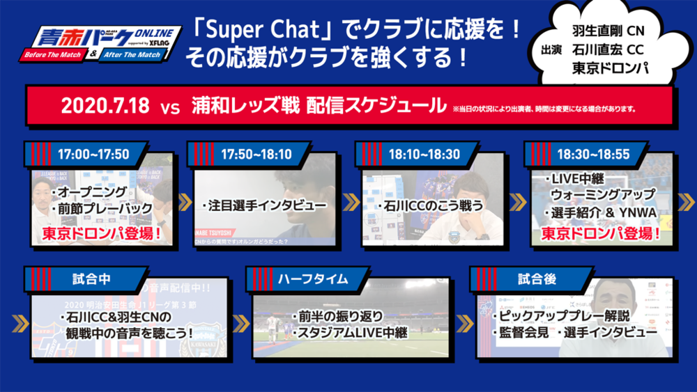 【7/18(土) 浦和戦】『青赤パークオンラインBefore/After The Match supported by XFLAG』開催のお知らせ