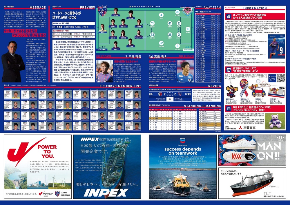 8/1(土)2020明治安田生命J1リーグ 第8節 vs サガン鳥栖(19:00キックオフ/味の素スタジアム)のオフィシャルマッチデープログラムについて、下記のとおりご案内いたします。
