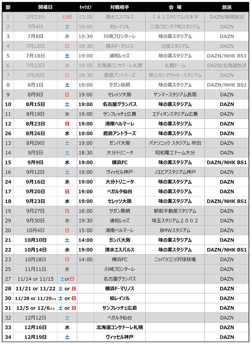 ※2:FC東京がAFCチャンピオンズリーグ 準々決勝に進出した場合、別日に変更となる可能性があります