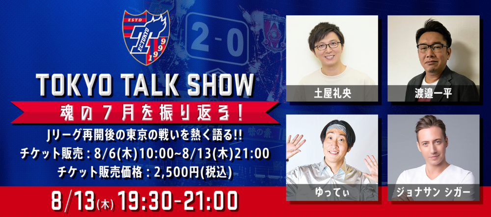 ファン・サポーターのみなさまとのコミュニケーションを深め、よりFC東京を楽しんでいただくため、チケット購入者限定の 【TOKYO TALK SHOW ~魂の7月を振り返る~】を開催いたします。