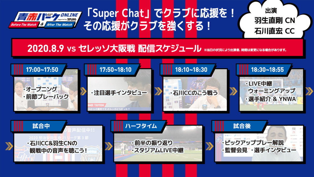 8/9(日)C大阪戦『青赤パークオンラインBefore/After The Match supported by XFLAG』開催のお知らせ