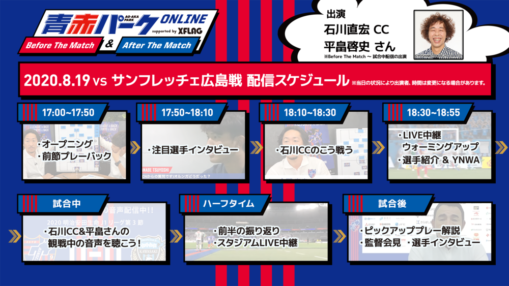 8/19(水)広島戦『青赤パークオンラインBefore/After The Match supported by XFLAG』開催のお知らせ