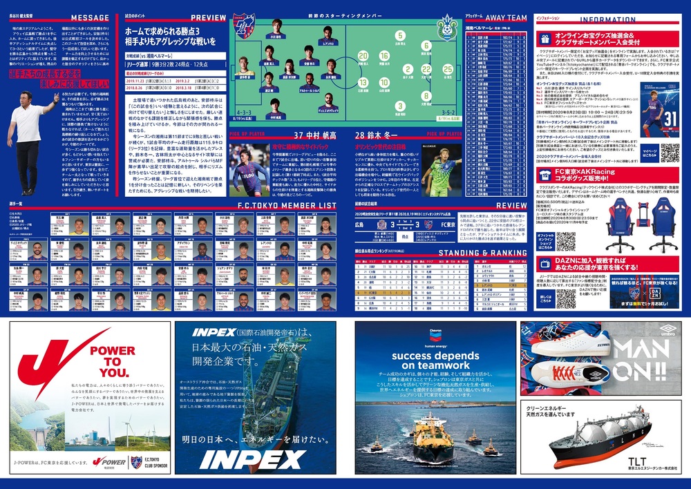 □オフィシャルマッチデープログラム2020 (表紙:安部柊斗 選手)