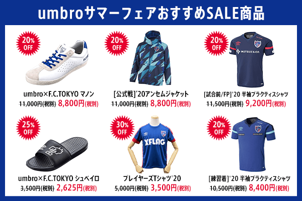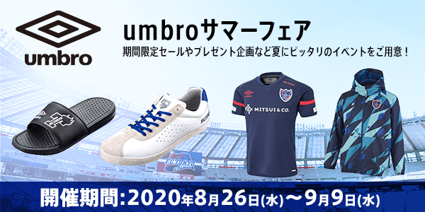 そこで、『umbro Day』開催を記念して、8月26日(水)~9月9日(水)までの期間限定でオフィシャルオンラインショップとユーロスポーツ味の素スタジアム店にて『umbroサマーフェア』を開催いたします。