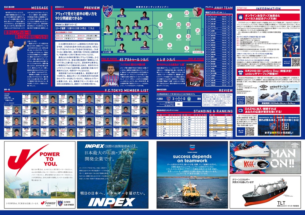 8/26(水) 2020明治安田生命J1リーグ 第26節 vs 鹿島アントラーズ(19:00キックオフ/味の素スタジアム)のオフィシャルマッチデープログラムについて、下記のとおりご案内いたします。