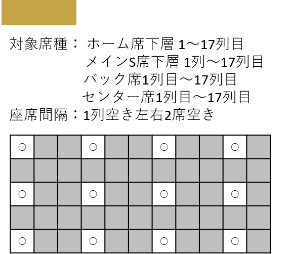 下記の通り、制限付きの試合開催時は席の間隔を空けてご着席いただきます。