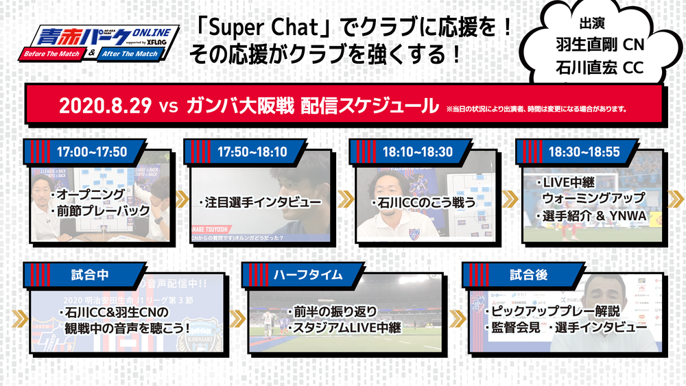 8/29(土)G大阪戦『青赤パークオンラインBefore/After The Match supported by XFLAG』開催のお知らせ