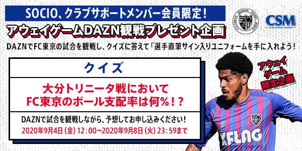 SOCIO、クラブサポートメンバーのみなさまにFC東京のアウェイゲームを楽しんで視聴いただけるよう、アウェイゲーム特別企画として、「選手直筆サイン入りユニフォームを手に入れよう!」企画の第2弾を実施いたします。