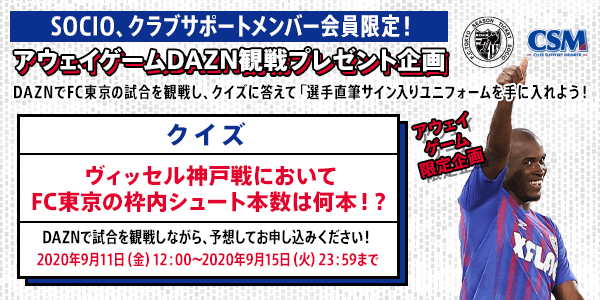 SOCIO、クラブサポートメンバーのみなさまにFC東京のアウェイゲームを楽しんで視聴いただけるよう、アウェイゲーム特別企画として、「選手直筆サイン入りユニフォームを手に入れよう!」企画の第5弾を実施いたします。