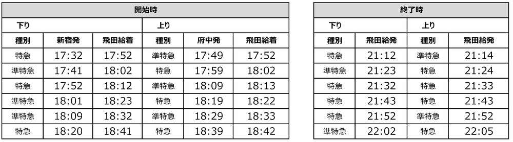 上り…飛田給発21:14~22:05の特急・準特急/計6本