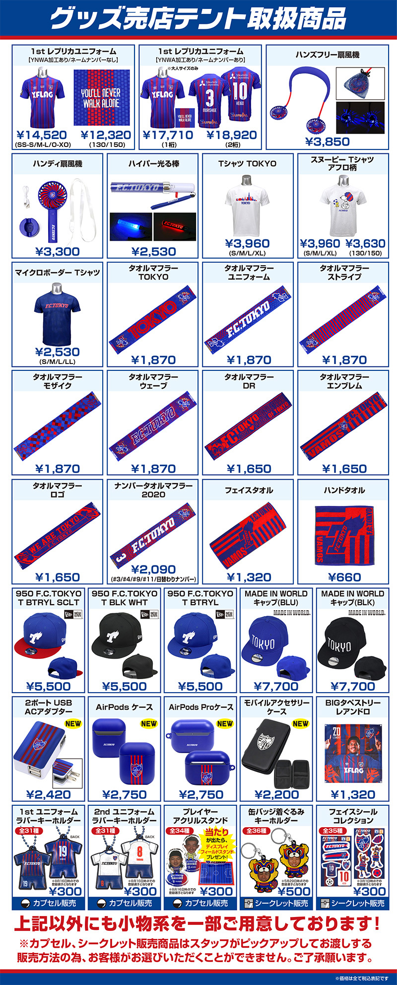 9月16日(水)2020明治安田生命J1リーグ 第24節 vs大分トリニータ(19:00キックオフ/味の素スタジアム)にて、グッズ売店、ガチャガチャコーナーを実施いたします。