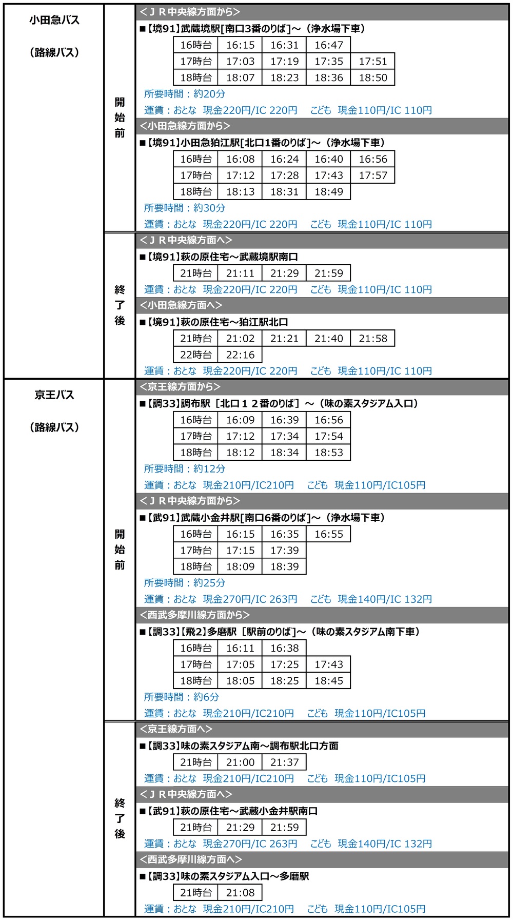 9/20(日) 2020明治安田生命J1リーグ 第17節 vsベガルタ仙台(19:00キックオフ/味の素スタジアム)にて運行されるシャトルバス・路線バスについてご案内いたします。
