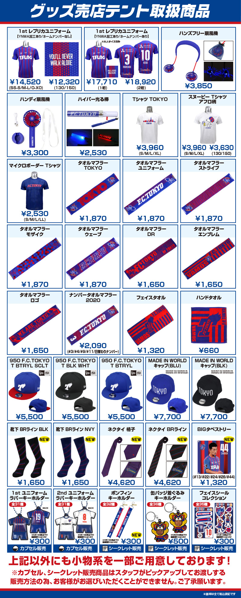 9月20日(日) 2020明治安田生命J1リーグ 第17節 vsベガルタ仙台(19:00キックオフ/味の素スタジアム)にて、グッズ売店、ガチャガチャコーナーを実施いたします。