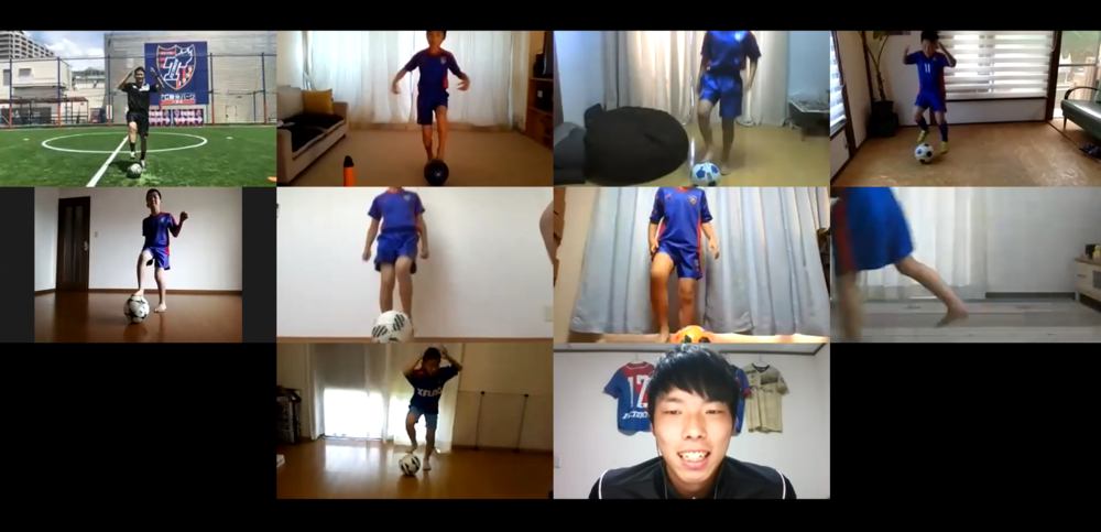 Zoomを通じて、コーチの動きにあわせて、簡単なステップを踏んでボールをたくさん触ります。