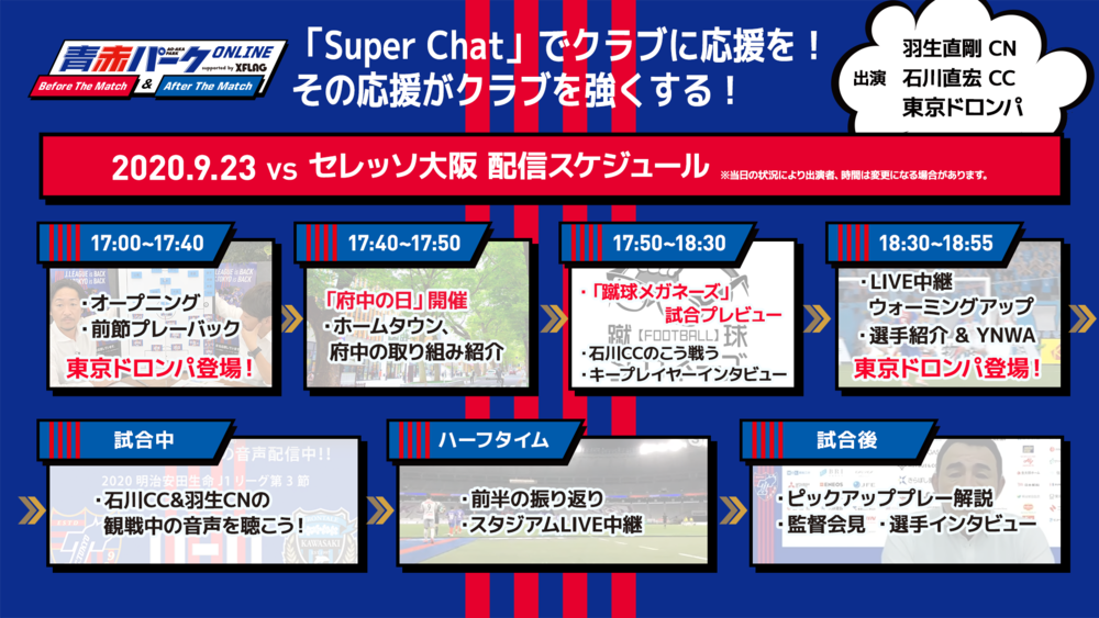 9/23(水) C大阪戦『青赤パークオンラインBefore/After The Match supported by XFLAG』開催のお知らせ