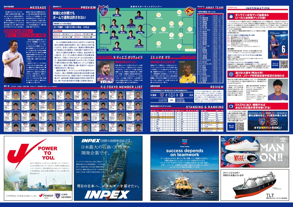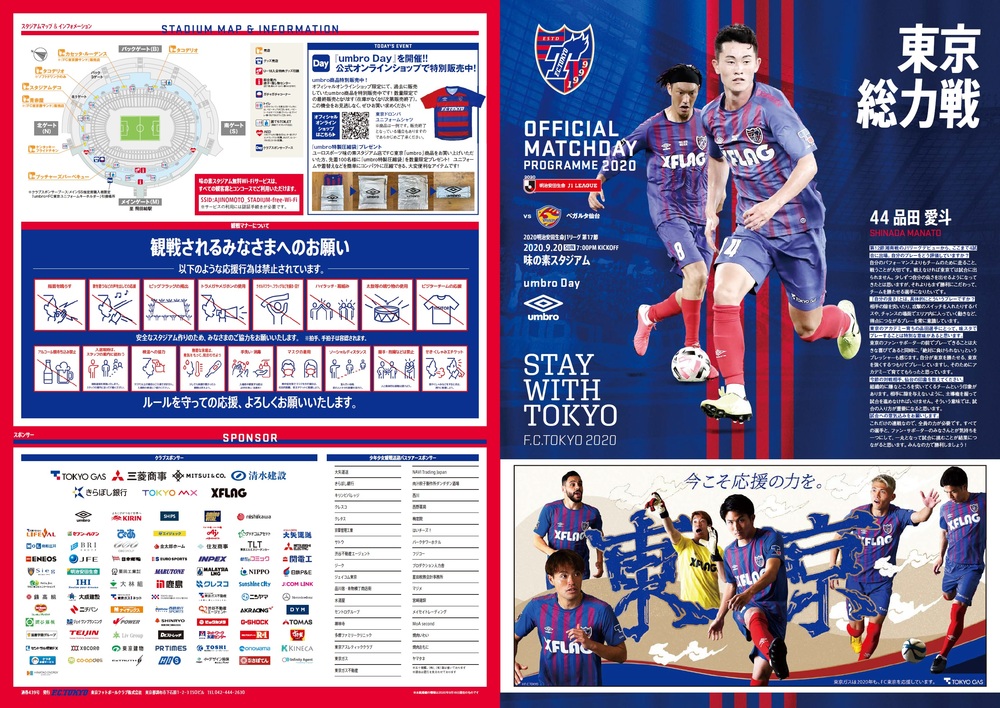 9/20(日) 2020明治安田生命J1リーグ 第17節 vs ベガルタ仙台(19:00キックオフ/味の素スタジアム)のオフィシャルマッチデープログラムについて、下記のとおりご案内いたします。