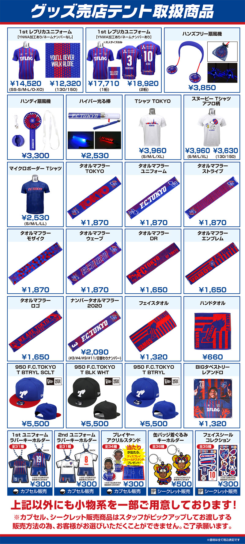 9月23日(水) 2020明治安田生命J1リーグ 第18節 vsセレッソ大阪(19:00キックオフ/味の素スタジアム)にて、グッズ売店、ガチャガチャコーナーを実施いたします。