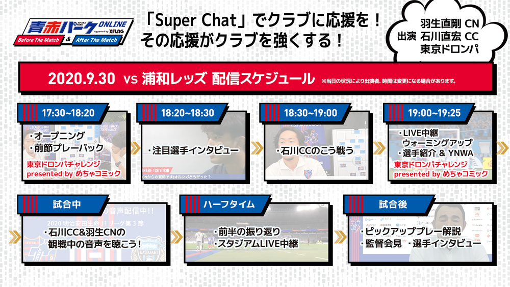 9/30(水) 浦和戦『青赤パークオンラインBefore/After The Match supported by XFLAG』開催のお知らせ