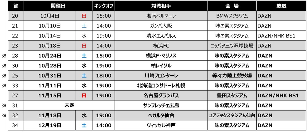 2020明治安田生命J1リーグ の10月以降の日程につきまして、下記のとおり決定いたしましたので、お知らせいたします。