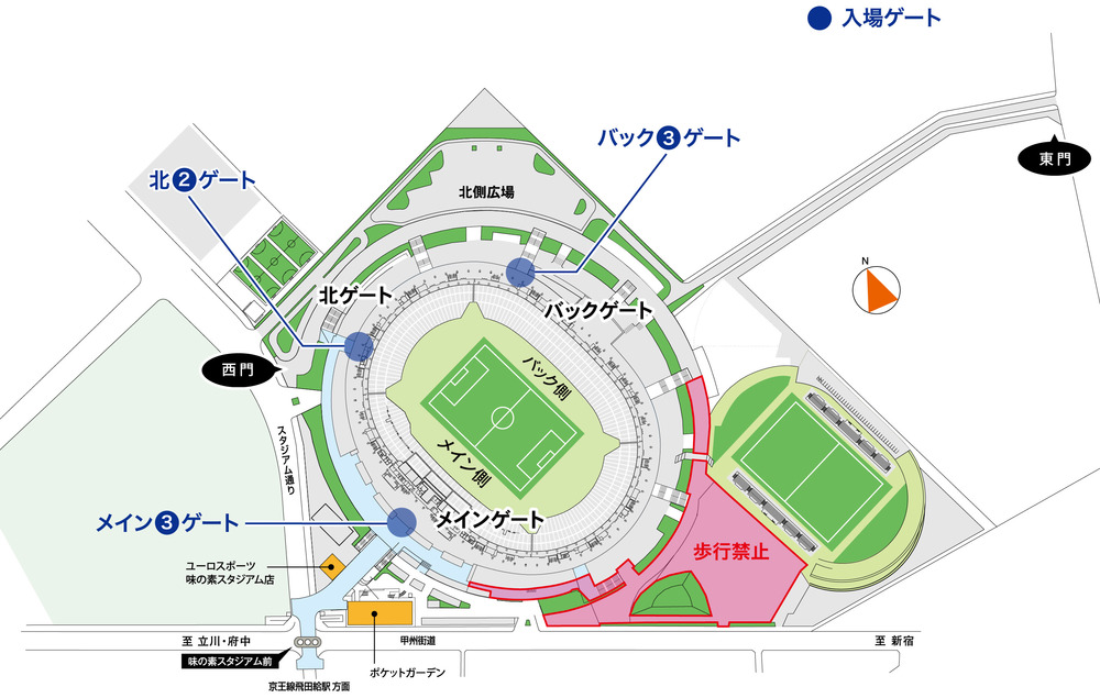 ・バナー(旗、横断幕)の事前準備をされる方には、開門120分前にスタジアム敷地内の「ユーロスポーツ味の素スタジアム店横三角広場」にお集まりください。