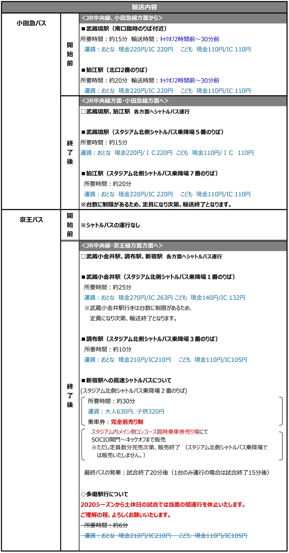 10/10(土) 2020明治安田生命J1リーグ 第21節 vsG大阪(14:00キックオフ/味の素スタジアム)にて運行されるシャトルバス・路線バスについてご案内いたします。