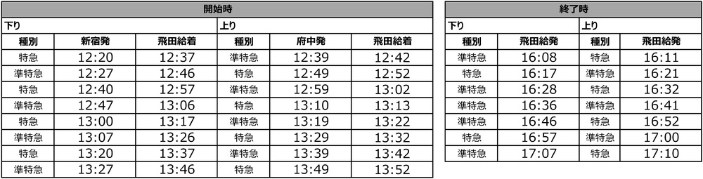 上り…飛田給発16:11~17:10の特急・準特急/計7本