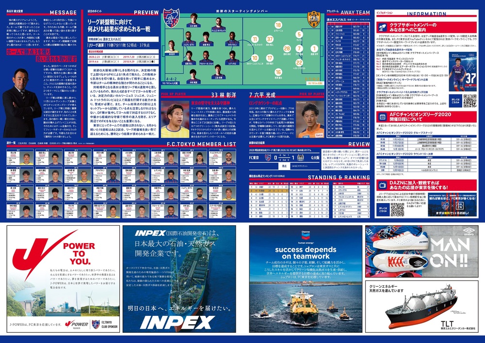 10/14(水) 2020明治安田生命J1リーグ 第22節 vs 清水エスパルス(19:00キックオフ/味の素スタジアム)のオフィシャルマッチデープログラムについて、下記のとおりご案内いたします。