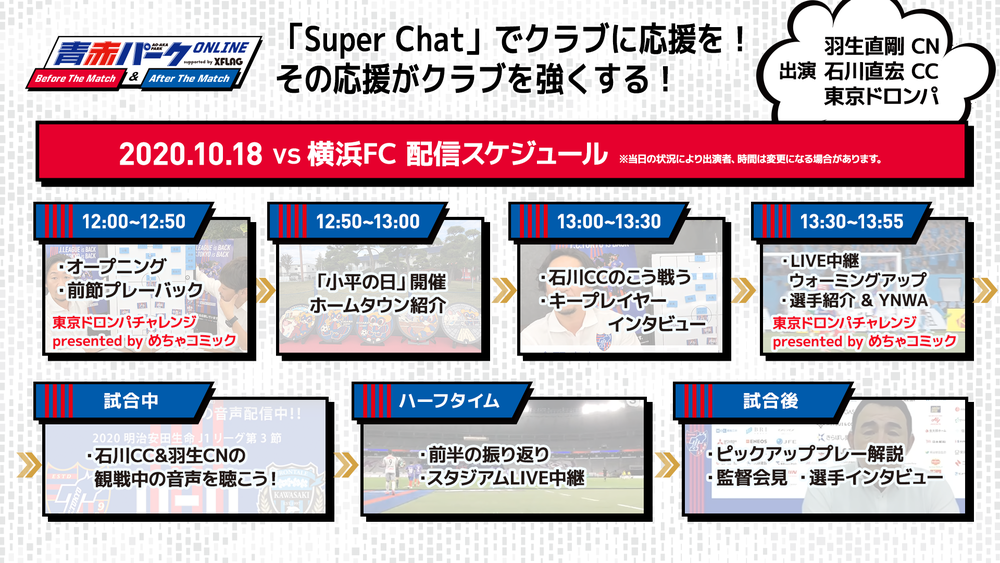 10/18(日) 横浜FC戦『青赤パークオンラインBefore/After The Match supported by XFLAG』開催のお知らせ