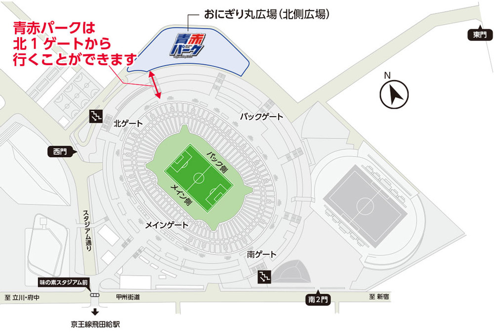 ※青赤パークはご入場いただいたみなさまがご利用いただけるエリアとなります。(北1ゲートに通行規制はございません)
