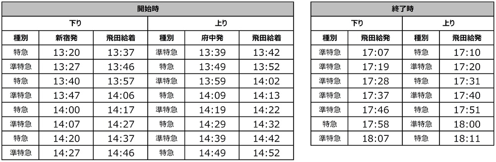 下り…飛田給発17:07~18:07の特急・準特急/計7本