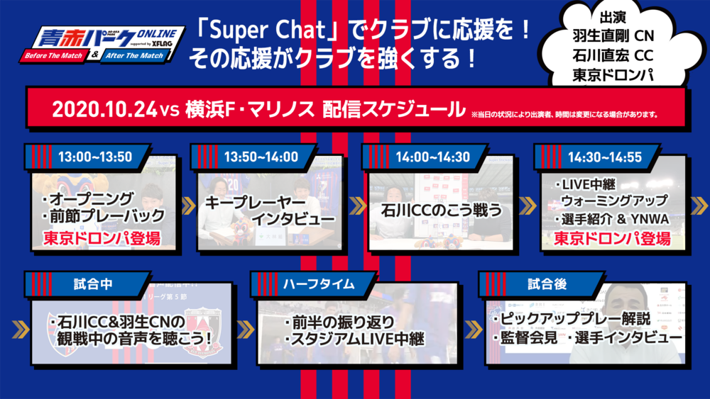 10/24(土) 横浜FM戦『青赤パークオンラインBefore/After The Match supported by XFLAG』開催のお知らせ