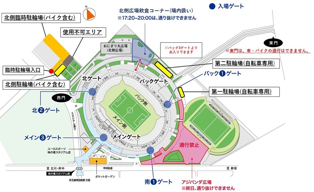 【味の素スタジアムからのお知らせ】10/28(水) 柏戦 自転車およびバイク駐輪場について