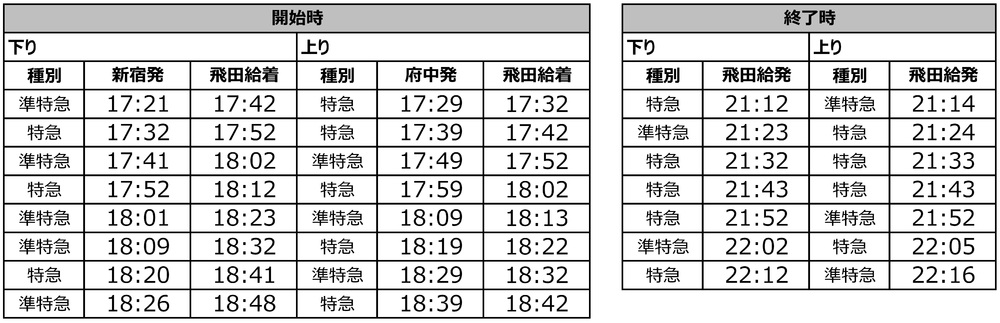 上り…飛田給発21:14~22:16の特急・準特急/計7本