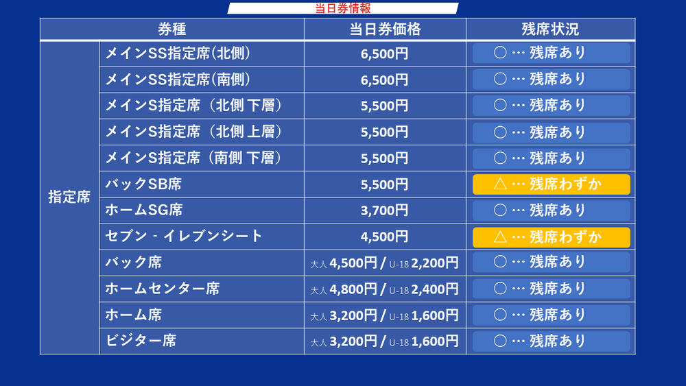 ※開門前の待機列はありません。全席指定席となっております。開門前にスタジアムへご来場いただくとはご遠慮ください。