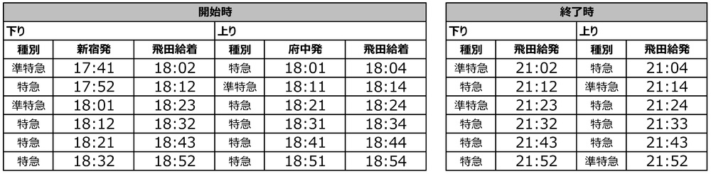 下り…飛田給発21:02~21:52の特急・準特急/計6本