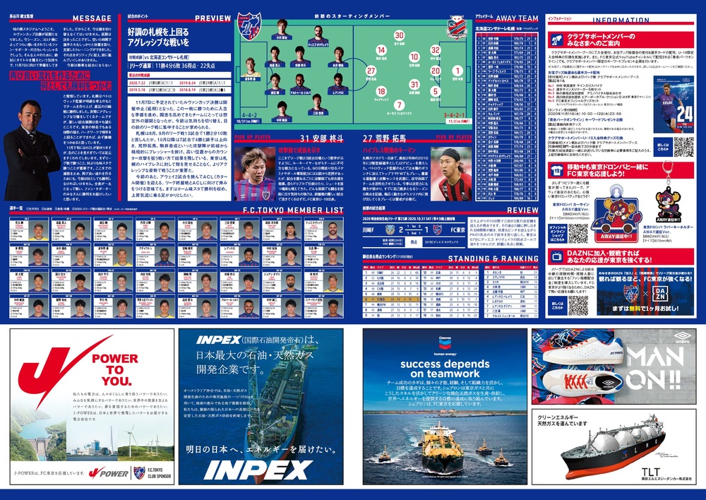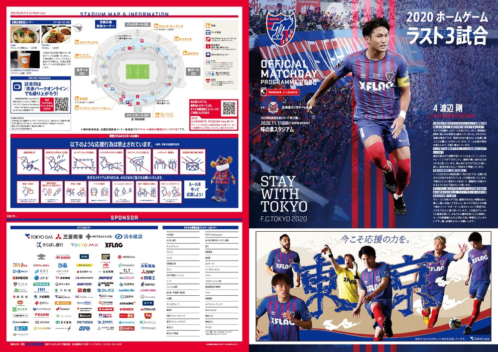 11/11(水) 2020明治安田生命J1リーグ 第33節 vs 北海道コンサドーレ札幌(19:00キックオフ/味の素スタジアム)のオフィシャルマッチデープログラムについて、下記のとおりご案内いたします。