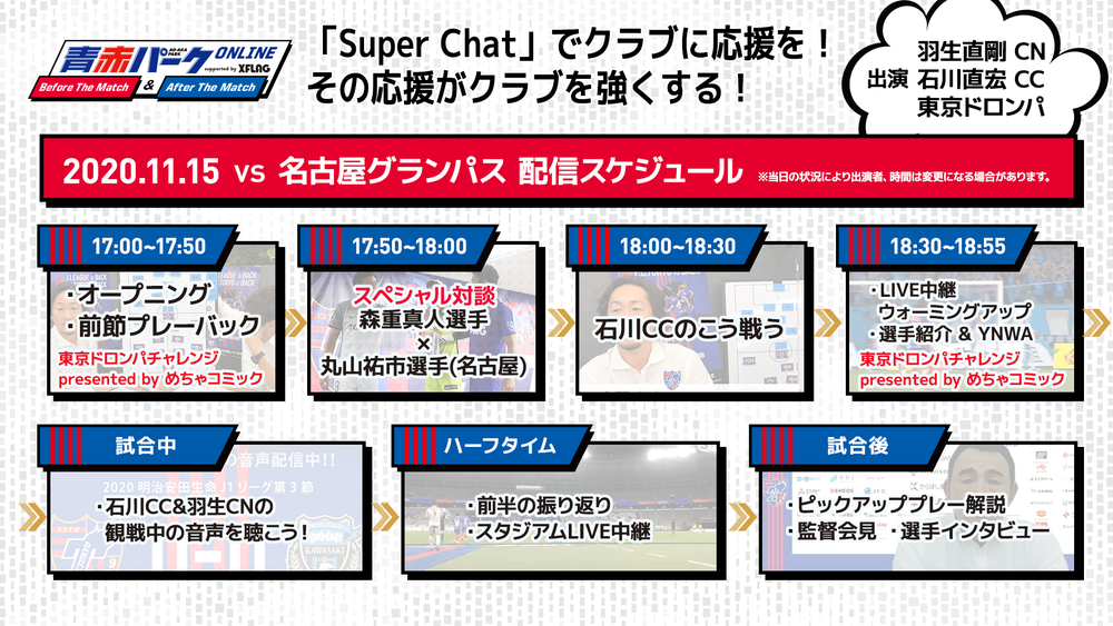 11/15(日) 名古屋戦『青赤パークオンラインBefore/After The Match supported by XFLAG』開催のお知らせ