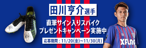 Jリーグ公式アプリ「Club J.LEAGUE」にて、田川亨介選手直筆サイン入りスパイクプレゼントキャンペーンを実施いたします。
