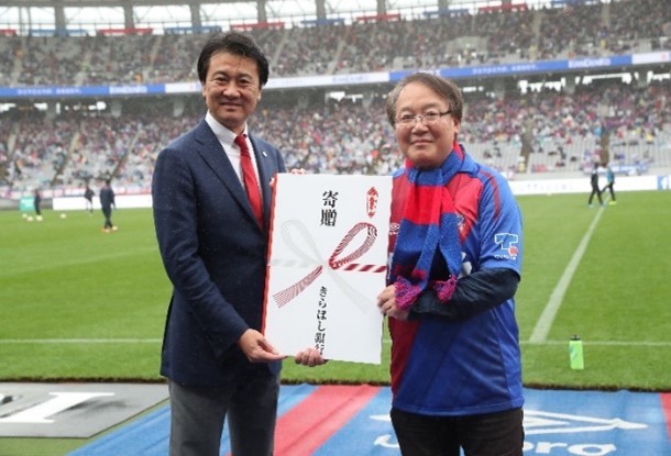 FC東京のビジョンのひとつである、サッカーを中心としたスポーツの普及・振興に賛同していただき、子どもたちのための育成資金がきらぼし銀行よりFC東京へ贈呈されます。本年は大型映像機での放映となります。