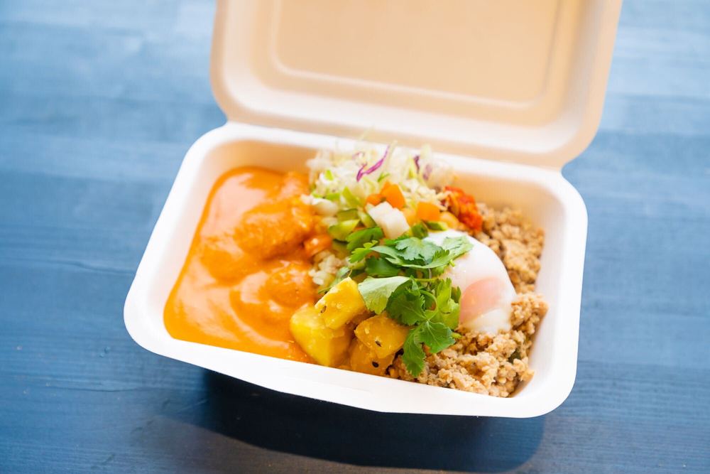 ・バターチキンカレー&ガパオ温泉卵のせ 850円