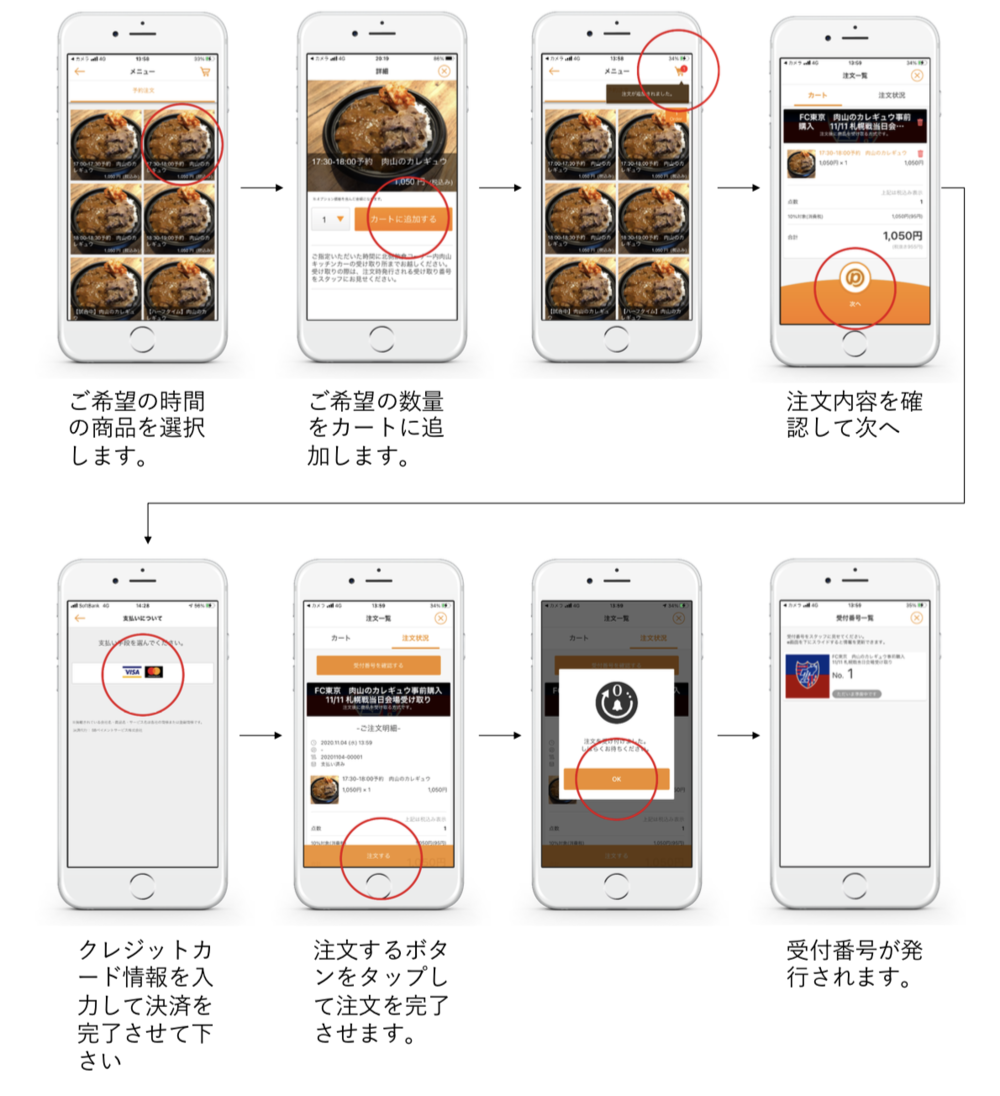 ・購入完了時に受取番号が発行されますので、当日青赤パークの受取場所で、受取番号を見せて商品をお受け取りください。