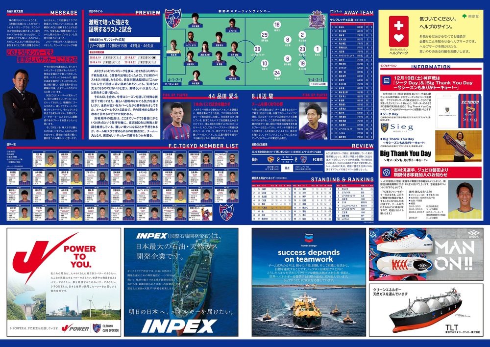 12/12(土) 2020明治安田生命J1リーグ 第31節 vs サンフレッチェ広島(14:00キックオフ/味の素スタジアム)のオフィシャルマッチデープログラムについて、下記のとおりご案内いたします。